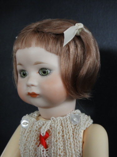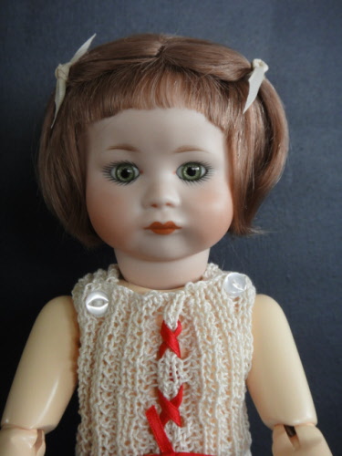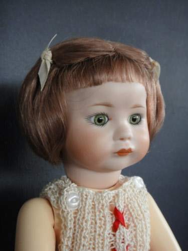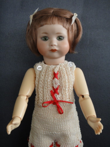 « Le boudeur » original, avait une tête en biscuit coulé avec bouche fermée, yeux mobiles en verre et un corps aux membres articulés.