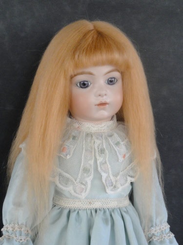 Long straight mohair wig with bang.