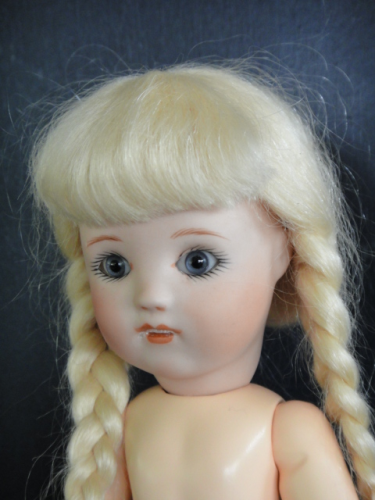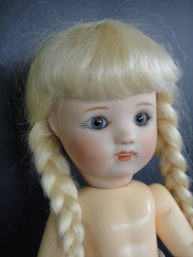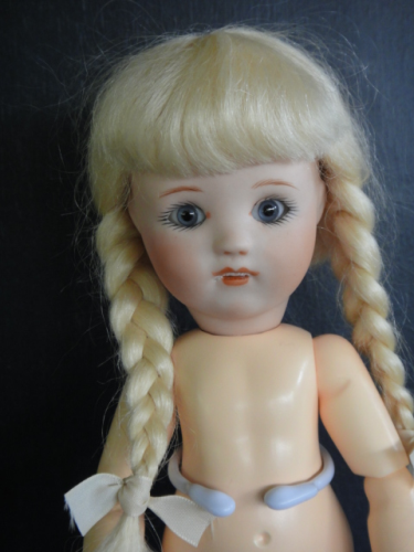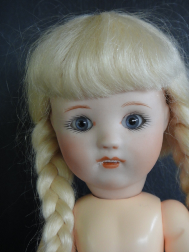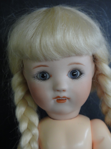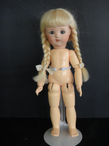 24 cm doll (9.5") , porcelain head, blue glass eyes.
