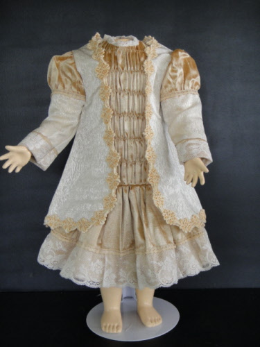 Superbe ensemble robe et veste pour poupée ancienne de 48-51cm. Corps 39cm.