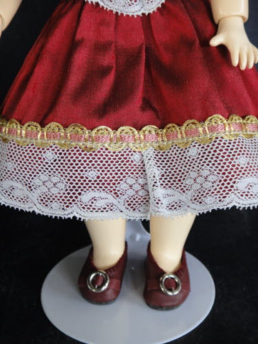 Superbe robe en soie rouge foncé garnie de dentelles anciennes.