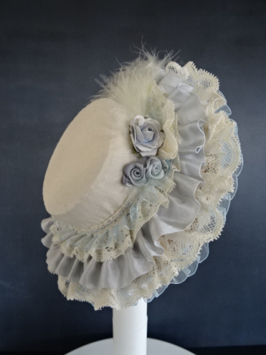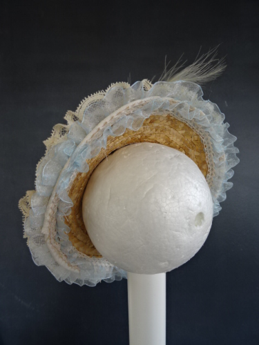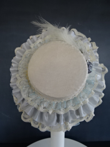 Correspond à une taille de poupée 5 à 6 , c'est à dire 25cm-26cm de tour de tête. Joliment décoré avec fleurs.