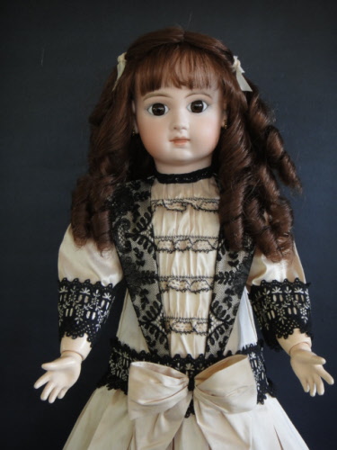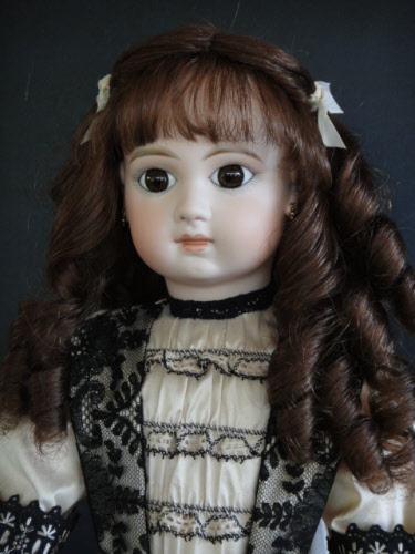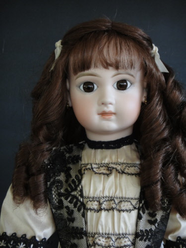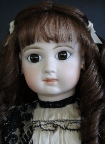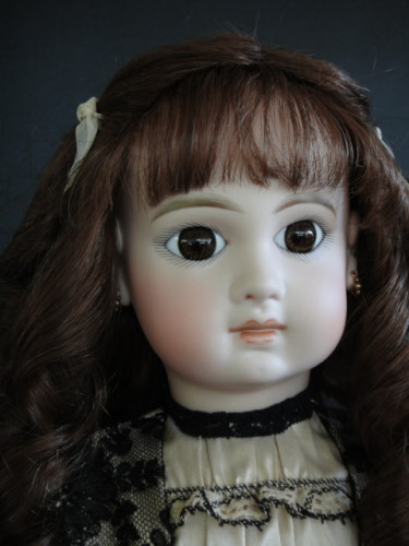 Poupée Jumeau bouche fermée, tête en porcelaine magnifiquement peinte, yeux paperweight marrons.