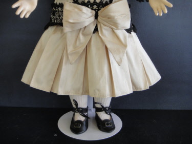 Superbe robe taille basse en soie ancienne écrue. Smocks dans le haut de la robe et gros ruban à la taille.