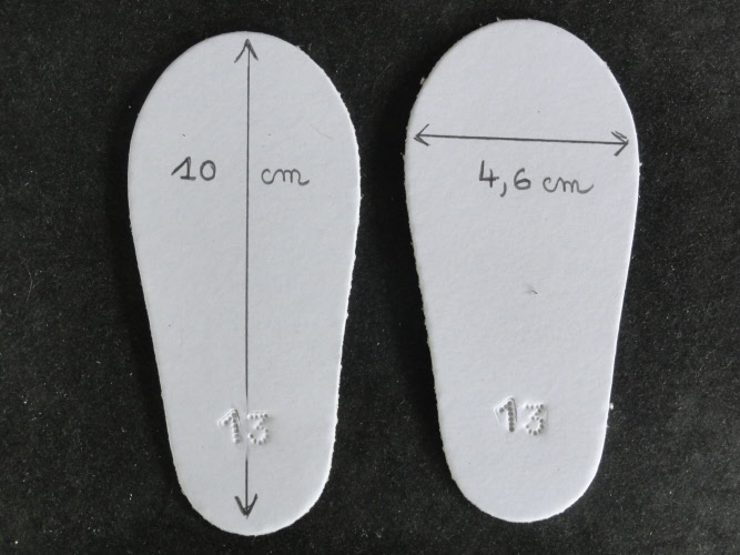 Longueur de la semelle 10 cm, largeur 4.6 cm.