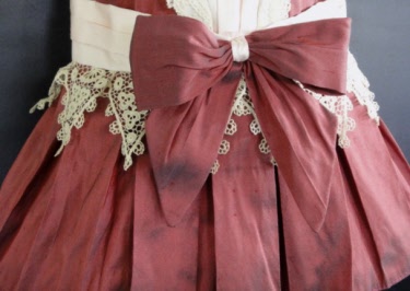 Très jolies dentelles anciennes dans le haut de la robe et très beau plissé dans le bas de la robe.