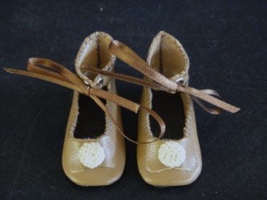 Pair of leather shoes type "Ballerina" with shoelace for fashion doll Huret - Barrois and others.