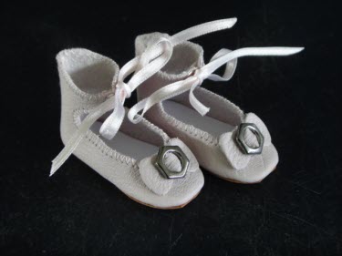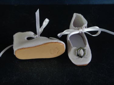 Pair of leather shoes type "Ballerina" with shoelace for fashion doll Huret - Barrois and others.