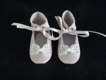 The decorations on the front of the shoes are antique bows, beads or buttons.