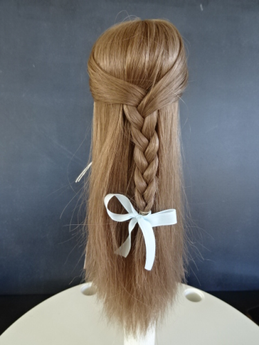Perruque en cheveux 100% naturels, cheveux longs raides avec une natte dans le dos de la perruque.