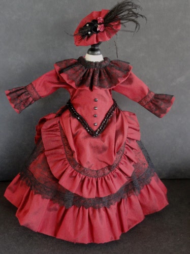 Superbe robe en soie pour Poupée Parisienne de 30cm (12").