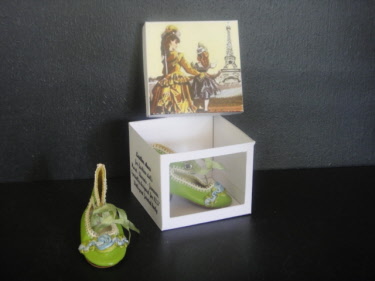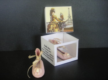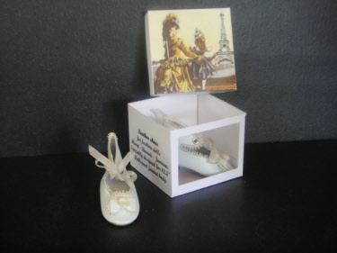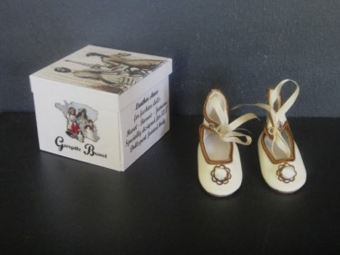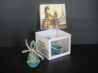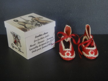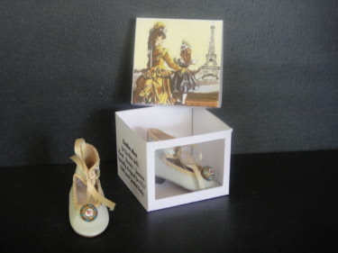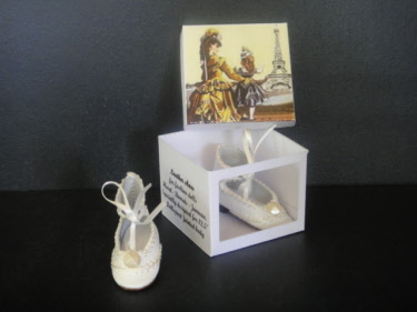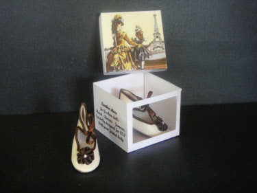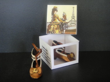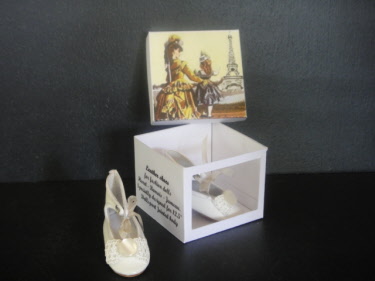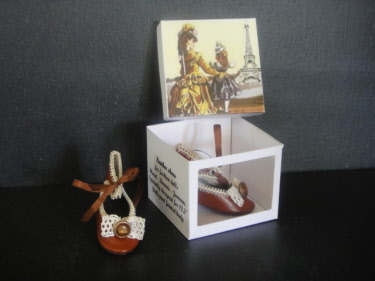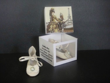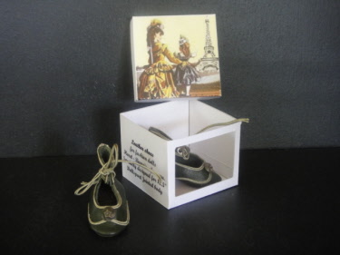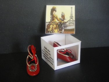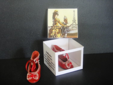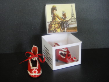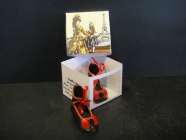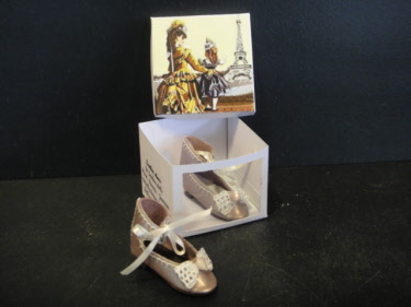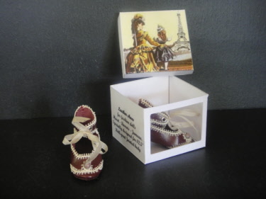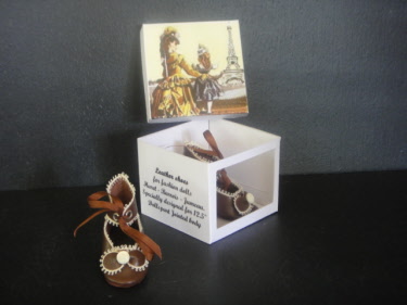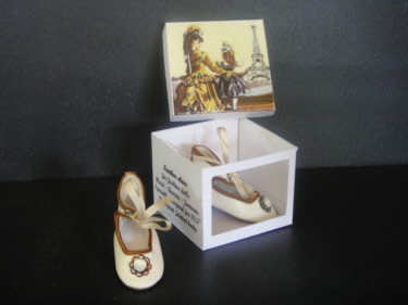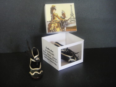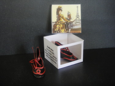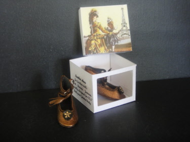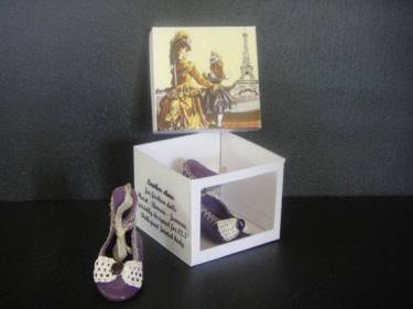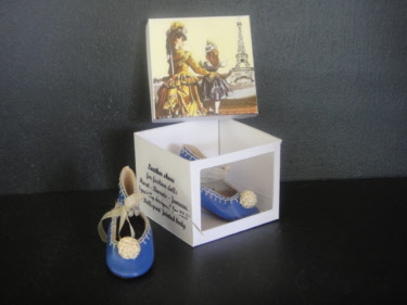 Ces paires de chaussures sont vendues avec leur boite, illustrée d'un affiche de Poupée de mode.