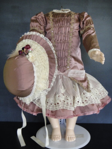 Superbe robe pour poupée ancienne de 53-58cm. Corps 43cm.