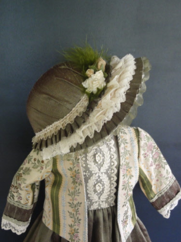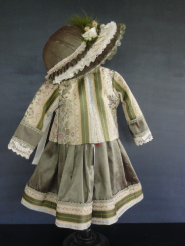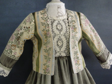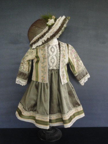 Superbe ensemble robe et veste pour poupée ancienne de 48-51cm. Corps 39cm.