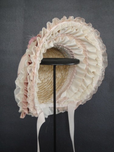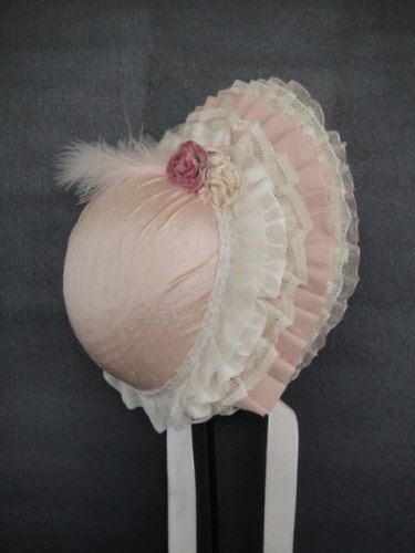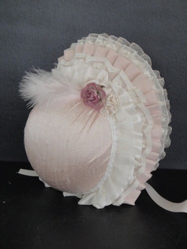 Chapeau pour poupée ancienne en soie et dentelles.