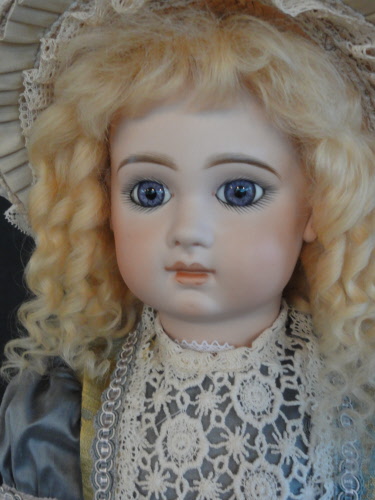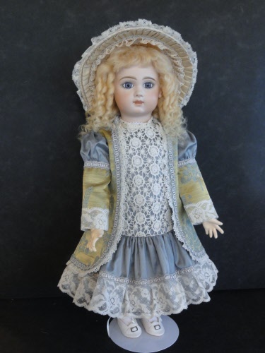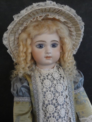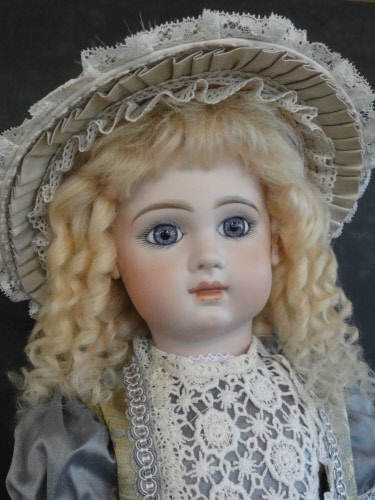 Poupée Jumeau bouche fermée, tête en porcelaine magnifiquement peinte, yeux en verre.