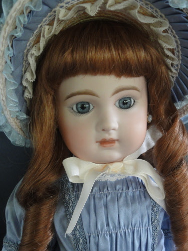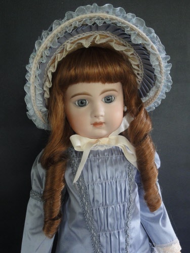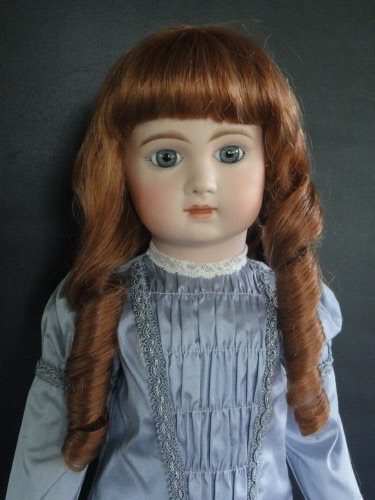 Poupée Jumeau bouche fermée, tête en porcelaine magnifiquement peinte, yeux paperweigth gris-bleu.