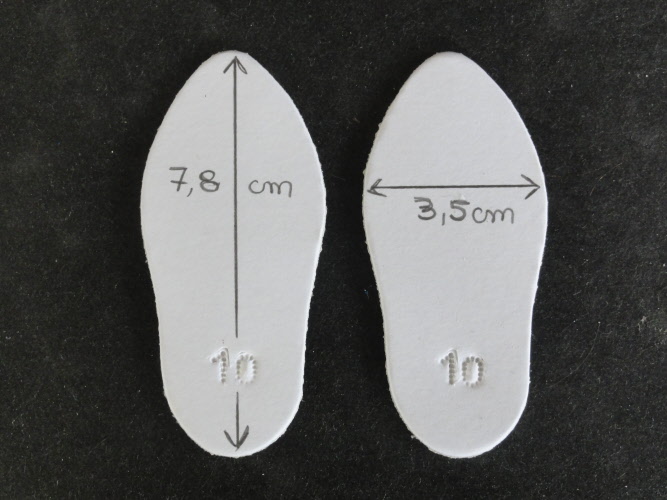 Longueur de la semelle 7.8 cm, largeur 3.5 cm.