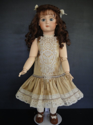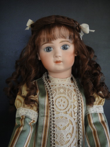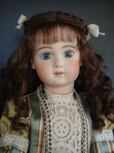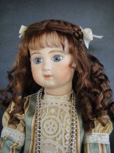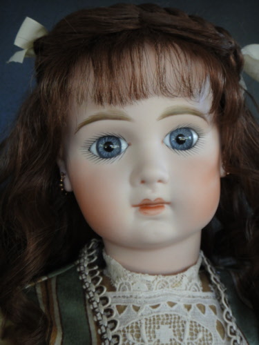 Poupée Jumeau bouche fermée, tête en porcelaine magnifiquement peinte, yeux paperweigth gris-bleu.