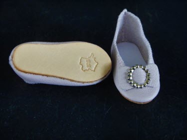 Paire de chaussures en cuir type "Ballerine" pour poupée de mode Huret - Barrois et autres.