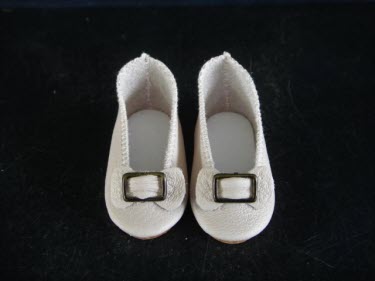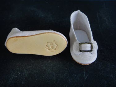 Paire de chaussures en cuir type "Ballerine" pour poupée de mode Huret - Barrois et autres.