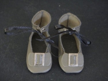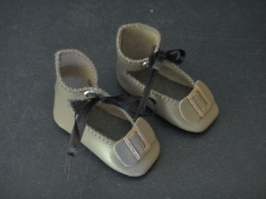 Paire de chaussures en cuir type "Ballerine" à lacets pour poupée de mode Huret - Barrois et autres.