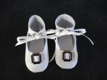 Paire de chaussures en cuir type "Ballerine" à lacets pour poupée de mode Huret - Barrois et autres.