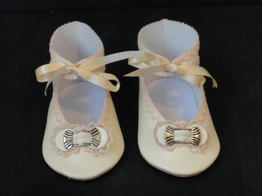 Chaussures en cuir de poupée style ancien.