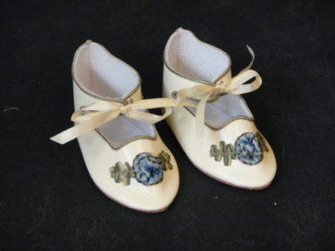 Chaussures en cuir de poupée style ancien.