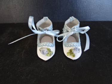 Entièrement réalisées à la main. Le galon ancien est collé tout autour de la chaussure.
