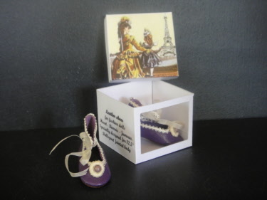 Chaussures à talons bobine. Décorations et galons anciens. Vendues avec leur boite.