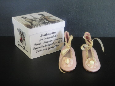 Pair of leather shoes for fashion dolls: Huret - Barrois - Jumeau and others.
