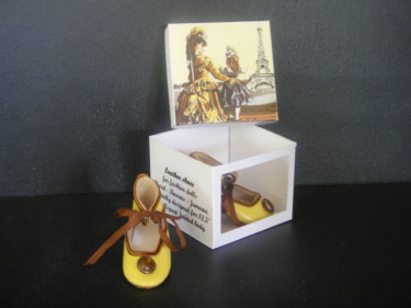 Chaussures à talons bobine. Décorations et galons anciens. Vendues avec leur boite.