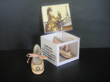 Shoes with spool heels. Decorations and braids are antique. Sold in the box.