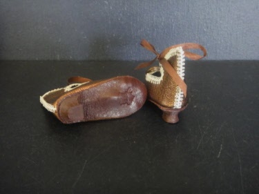 Pair of leather shoes for fashion dolls: Huret - Barrois - Jumeau and others.