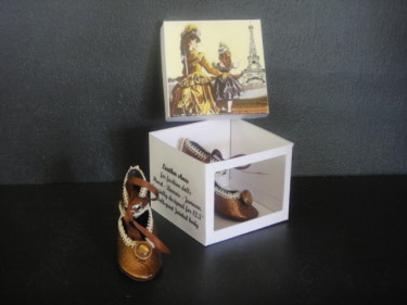 Shoes with spool heels. Decorations and braids are antique. Sold in the box.