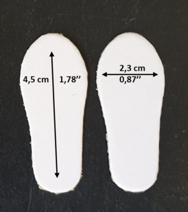 Taille du pied : Longueur : 4.6 cm ; Largeur : 2.2 cm