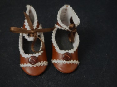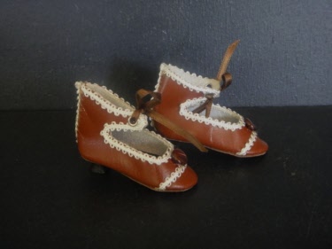 Pair of leather shoes for fashion dolls: Huret - Barrois - Jumeau and others.