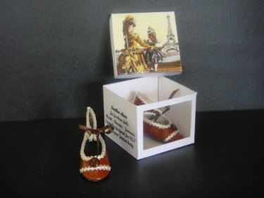 Chaussures à talons bobine. Décorations et galons anciens. Vendues avec leur boite.