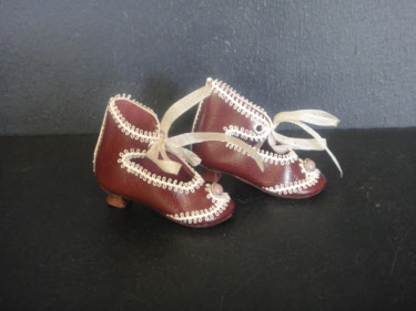 Pair of leather shoes for fashion dolls: Huret - Barrois - Jumeau and others.