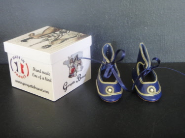 The leather outsole is branded with the hot iron of the logo of our house: the map of France with the initials GB of Georgette BRAVOT.
