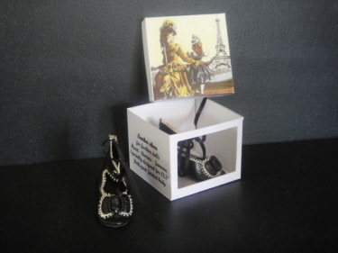 Chaussures à talons bobine. Décorations et galons anciens. Vendues avec leur boite.