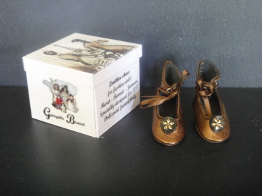 Paire de chaussures en cuir pour poupées de mode Huret - Barrois - Jumeau et autres.