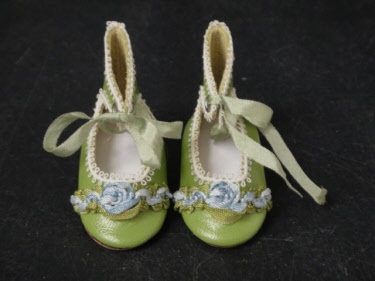 Shoes with spool heels. Decorations and braids are antique. Sold in the box.
