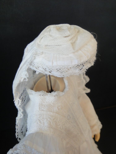 Chapeau avec dentelle et petite traîne.
