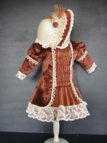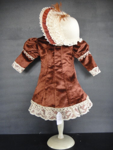 Superbe robe et veste pour poupée ancienne de 45-46 cm. Corps 36 cm.