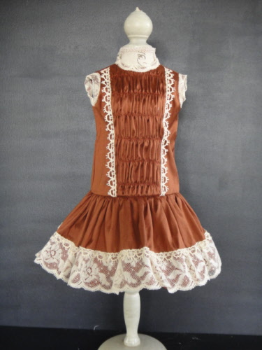 Robe taille basse en soie ancienne couleur rouille. Superbe dentelles anciennes .