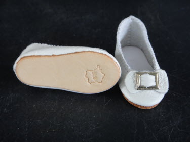 Paire de chaussures en cuir type "Ballerine" pour poupée de mode Huret - Barrois et autres.