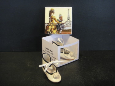 Shoes with spool heels. Decorations and braids are antique. Sold in the box.