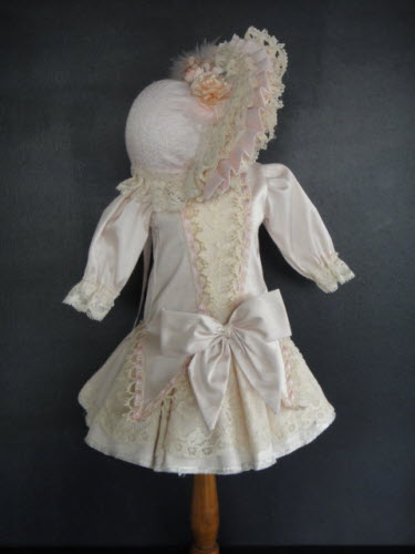 Superbe robe pour poupée ancienne de 32 - 34 cm (12.6" - 13.4").